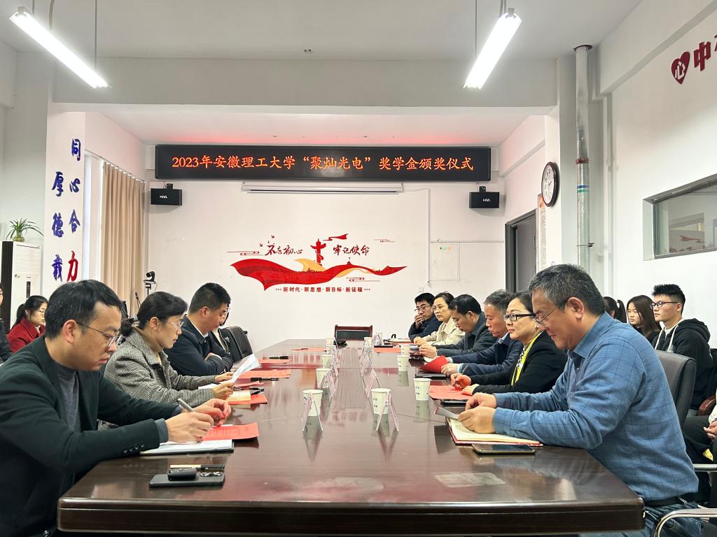 11月23日下午,安徽理工大学“聚灿光电奖学金”表彰仪式在明道楼A318举行。聚灿光电科技(宿迁)有限公司副总经理徐志军、人力资源部校园招聘副经理陈红应邀出席仪式。校党委常委、副校长宫能平,校合作发展处处长、校友会办公室主任刘艳,党委学工部部长、学生处处长涂有胜,澳门六合彩三中三