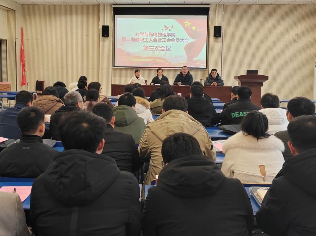 在明道楼一楼报告厅召开第二届教职工大会暨工会会员大会第三次会议。会议由澳门六合彩三中三