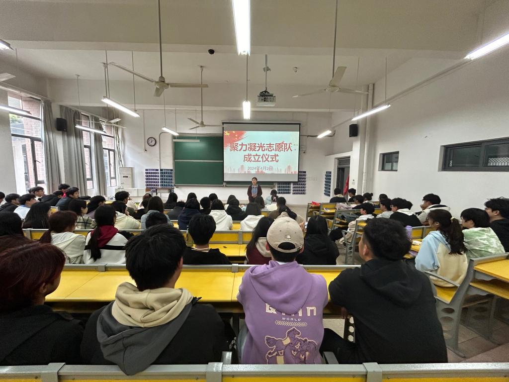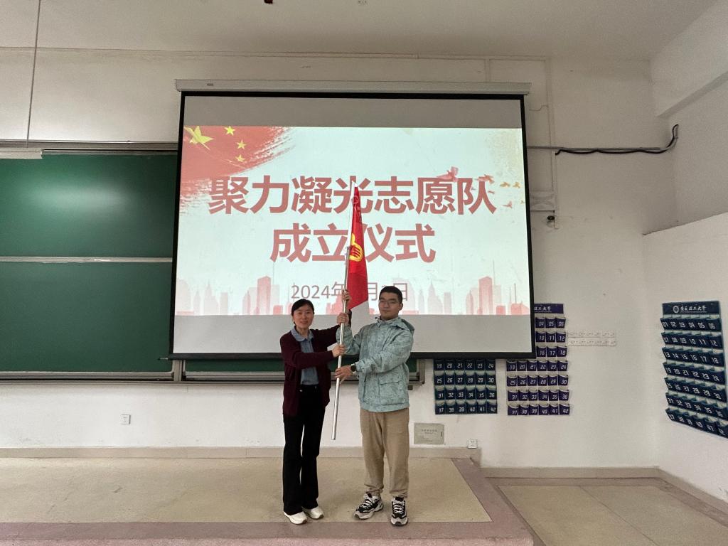 志愿者代表上台发言,表达了参与志愿服务的热情和决心,希望自己能在志愿服务中奉献自己的爱心,发挥自己的作用,体现自己的价值。学生工作负责人为志愿队授旗,标志着聚力凝光志愿队正式成立。志愿者们在队旗下庄严宣誓,承诺将尽己所能,为学校、社会提供志愿服务。