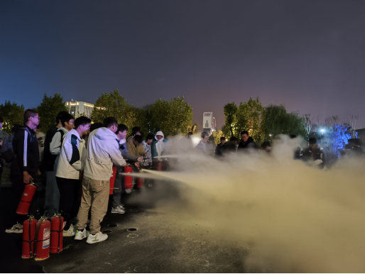 在灭火实操环节,师生们在彭广峰老师的指导下,操作灭火器,对模拟火源进行灭火。大家沉着冷静,按照正确的操作方法,迅速将火扑灭。通过实际操作,师生们不仅掌握了灭火器材的使用方法,还提高了应对突发火灾的能力。