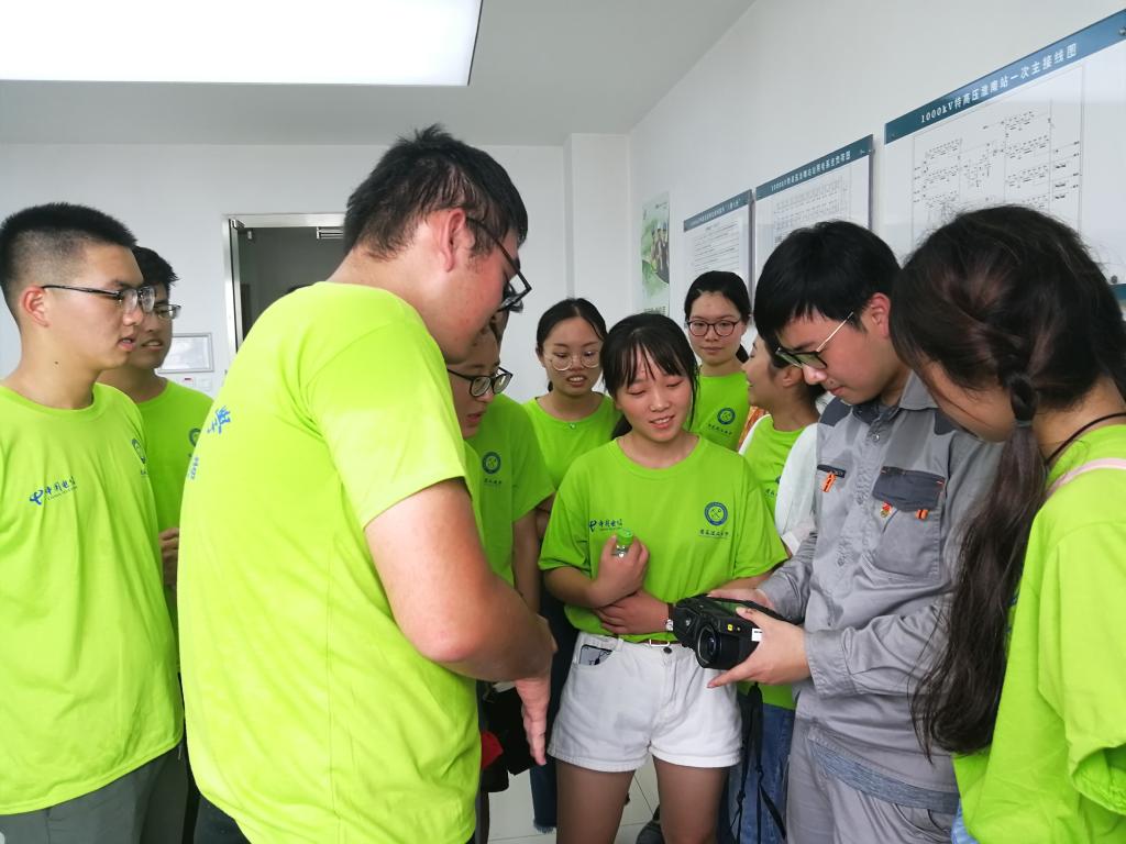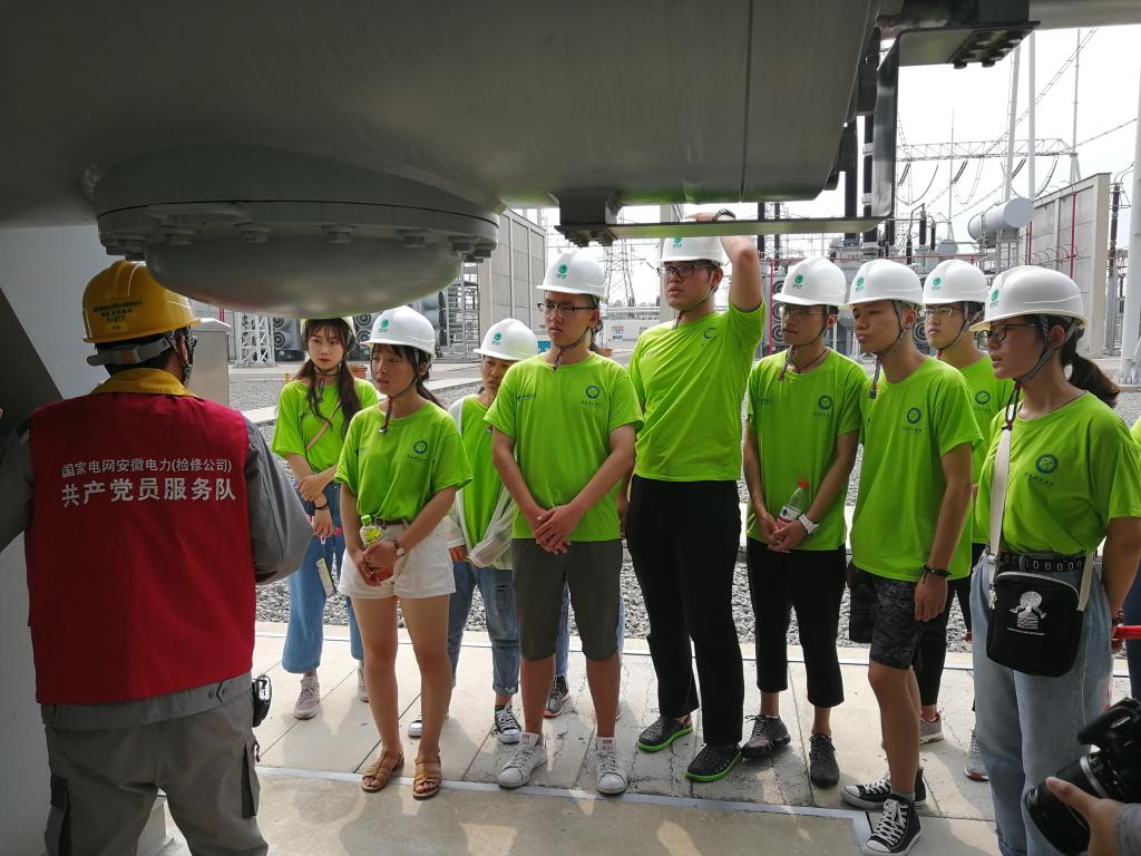 下午2点,团队一行来到1000kV特高压淮南站。在工作人员的带领下,先后参观了变电站的主变区、1000kVGIS区、无功补偿区以及500KV设备区。在现场轰鸣的机组声中,大家认真聆听工作人员的讲解,并对身边这些在高温环境下依然一丝不苟,认真工作的工作人员致以了崇高的敬意。现场一次设备参观结束后,队员们来到主控楼,从一排排精密的监控系统中能观看整个变电站的运行数据和控制回路,针对电网平时的运行与维护等方面的问题,调研团队与变电站的运维人员也进行了深入交流,并与之探讨了特高压对于我国节能减排的重要意义。