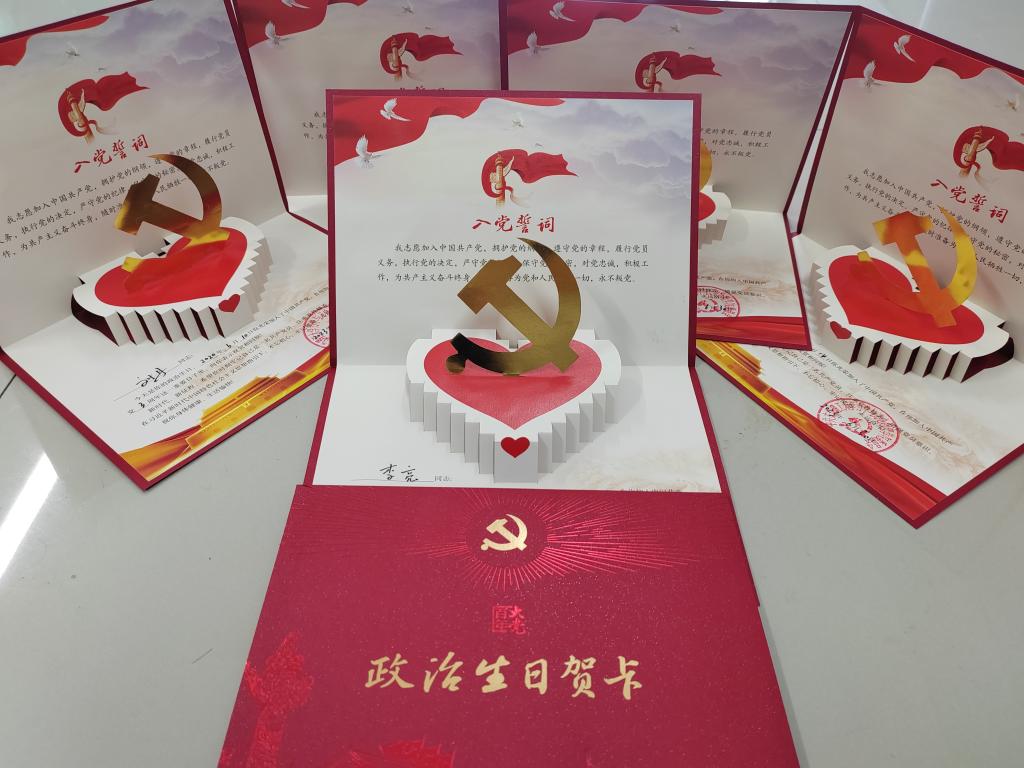 党委将印着党徽和入党誓词的“政治生日”贺卡送到党员手中。一张张贺卡,是对党员的激励,更是鞭策,提醒党员时刻牢记党员身份,时刻牢记党的宗旨和使命。