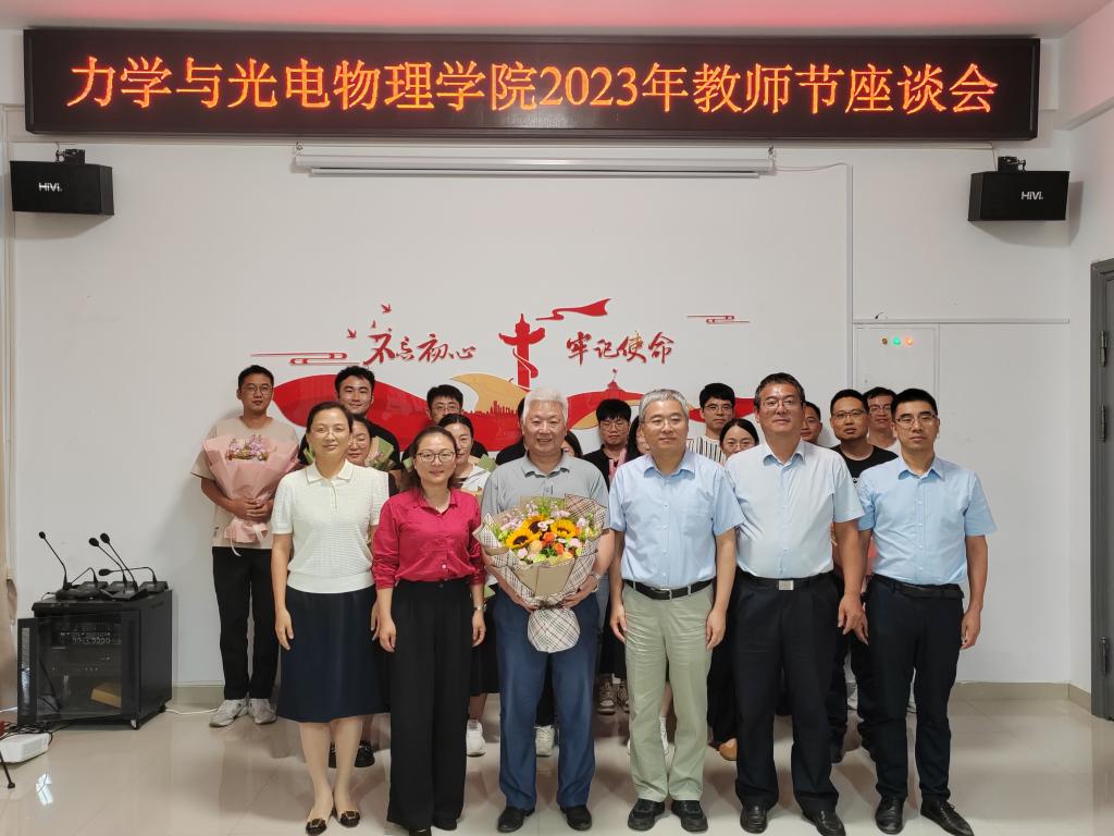 向新进教师赠送了纪念品,为老领导、老教师经来旺教授献上美丽的鲜花,并送上节日的祝福。