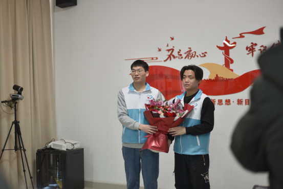 孙东升介绍了许梓强的在校情况,表示许梓强以大爱之举,诠释了生命的延续,展现了我校“团结、奋进、博学、奉献”校训精神,彰显了安理人的担当,有力的践行了社会主义核心价值观,传承了雷锋精神,发挥了党员的模范带头作用。朱梁表示,许梓强捐献造血干细胞挽救他人生命,充分展现新时代大学生的社会责任担当和风采,校团委将继续通过各种形式的志愿服务、公益活动,大力传播“奉献、友爱、互助、进步”的志愿精神,培养广大青年的爱心善意、责任担当,激发学生争当雷锋精神的传承者。
