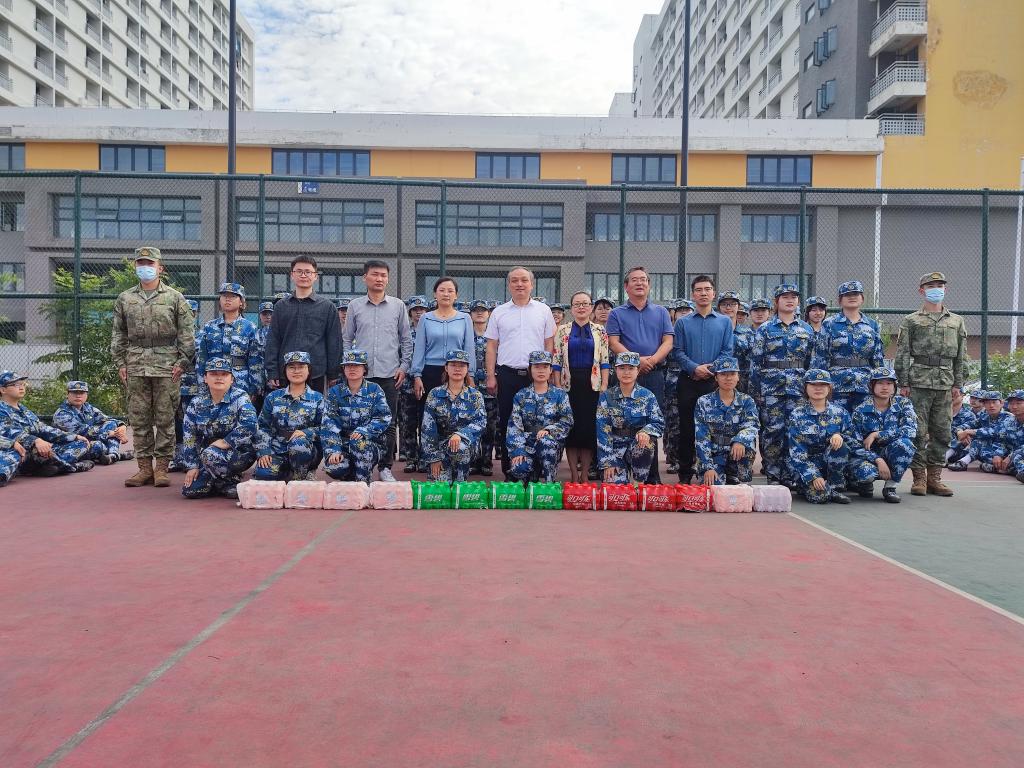 党政领导深入军训现场,看望慰问了参加军训的2022级新同学以及教官们,送去了军训的慰问品。