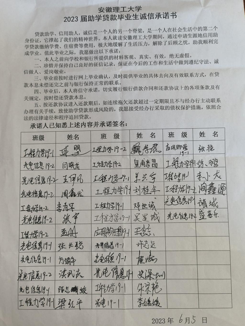 各年级辅导员召开诚信教育主题班会,低年级辅导员向学生重点强调要养成诚信品质,自觉自律,杜绝考试作弊行为。毕业班辅导员就生源地信用助学贷款及如何做好毕业还贷工作给同学们进行了详细解读,解答了毕业生关于正常还款、提前还款、逾期还款、违约责任等问题,同学们会后签订了诚信还款承诺书。