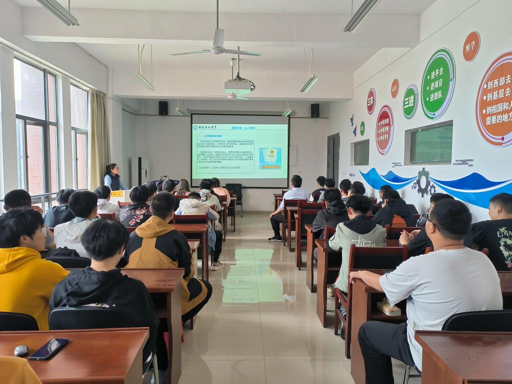 同学作国家安全教育知识主题讲座,从总体国家安全观的定义,内容及相关的法律法规进行讲解,尤其列举了典型案例为同学详细介绍,希望同学们引以为戒,自觉抵制危害国家安全的言论、行为,共同维护国家安全。
