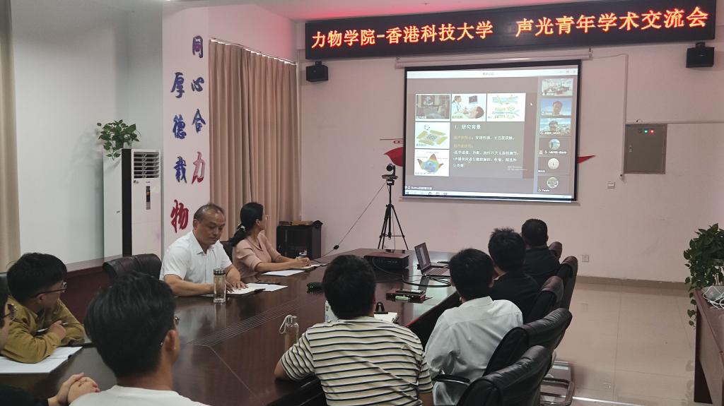 共同发起,采用线上线下相结合的形式进行。副院长(主持工作)圣宗强主持交流会,香港科技大学沈亚西副教授、朱星宏博士出席并作特邀报告,吴宏伟副教授、陈华俊副教授、杨永强博士、2020级研究生胡平作报告,副院长高娟、从事声光领域研究的部分教师和全体研究生参加了交流会。