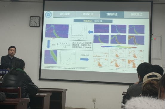 报告会上,雷冬介绍了混凝土微观结构特别是界面过渡区对混凝土宏观力学性能的影响规律及高精度测试方案。基于数字图像相关技术,结合扫描电镜和光学显微镜,开发了SEM-DIC和OM-DIC原位加载测试系统。通过对混凝土细观性能的高精度测试,成功观测并分析了界面过渡区在拉伸、压缩、弯曲等多种受力状态下的细观力学行为,揭示了界面过渡区对混凝土宏观力学性能的影响规律。随后,雷冬又介绍了近几年课题组对混凝土骨料类型、水灰比、添加剂等材料参数,冻融循环次数以及温差条件等因素对界面过渡区力学性能的影响规律,结合细观力学理论揭示了界面过渡区的薄弱力学特性与本构关系。