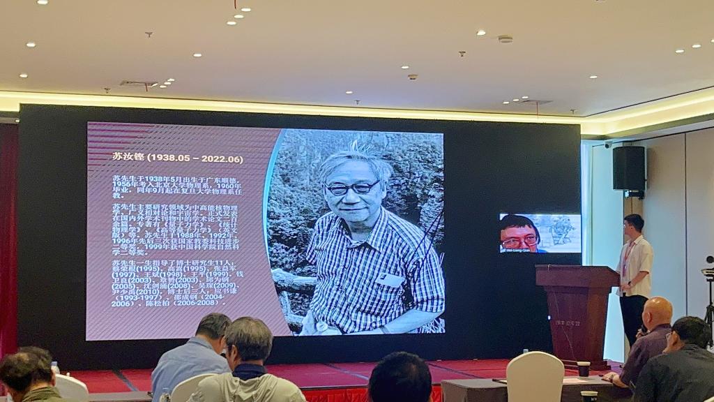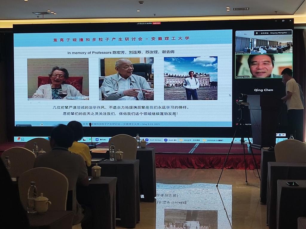 执行院长陈宇翱教授线上致辞,华南师范大学王恩科教授和国家自然科学基金委汲培文研究员出席开幕式并致辞。专家们对安徽理工大学在基础物理学科建设的布局表示肯定,认为此次会议以学术研讨形式回顾中高能核物理领域老一辈物理学家的开拓历程,传承科学家精神并激励新一代科研工作者勇于创新突破。